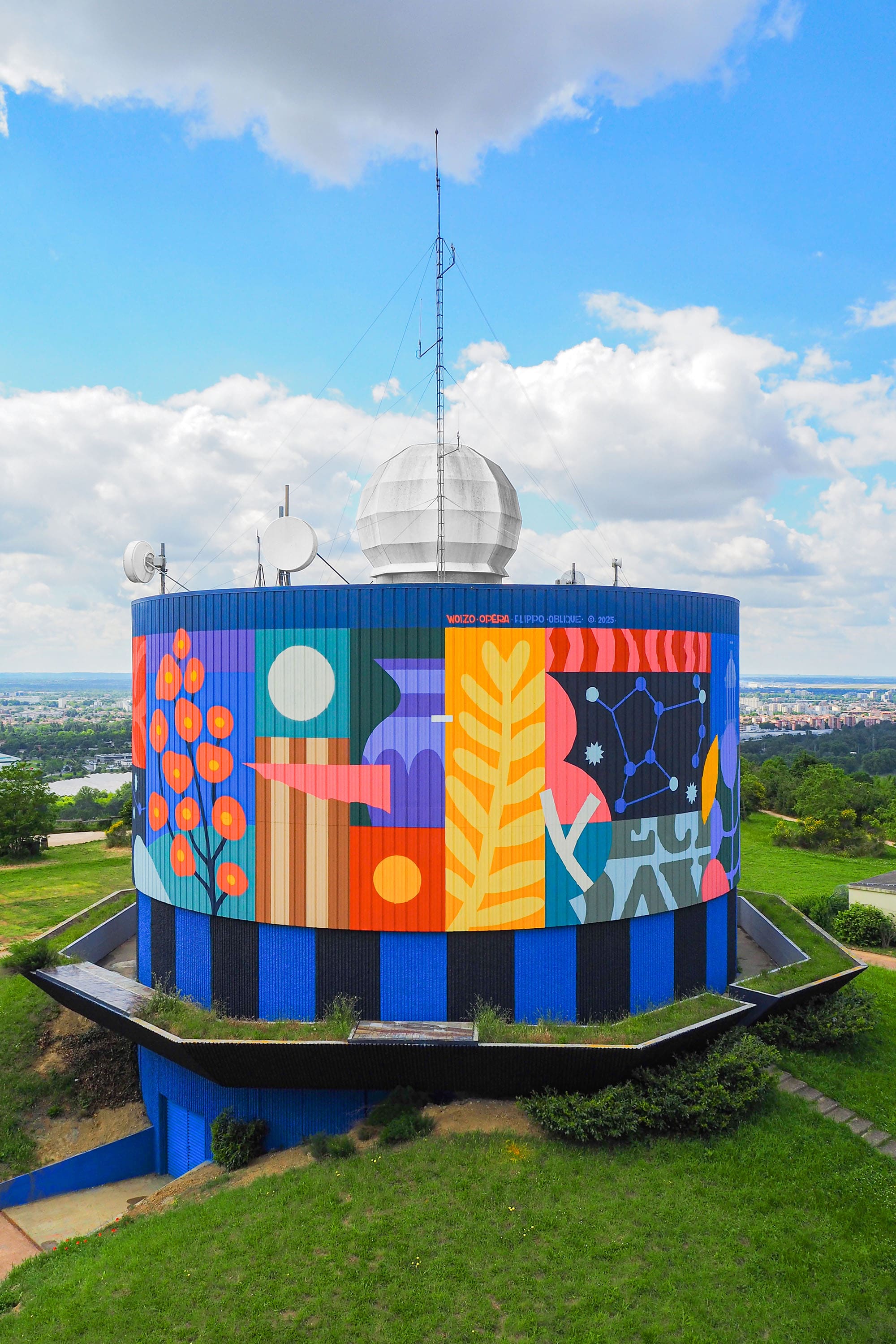 Habillage graphique sur le chateau d’eau de Pourvourville dans le quartier de Pech David sur les hauteurs de toulouse