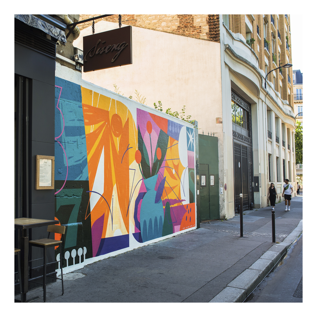 Fresque murale réalisé à quatres mains avec l’artiste Opera Graphiks pour le restaurant Siseng en partenariat avec le Studio CariatideCanal Sain Martin - Paris