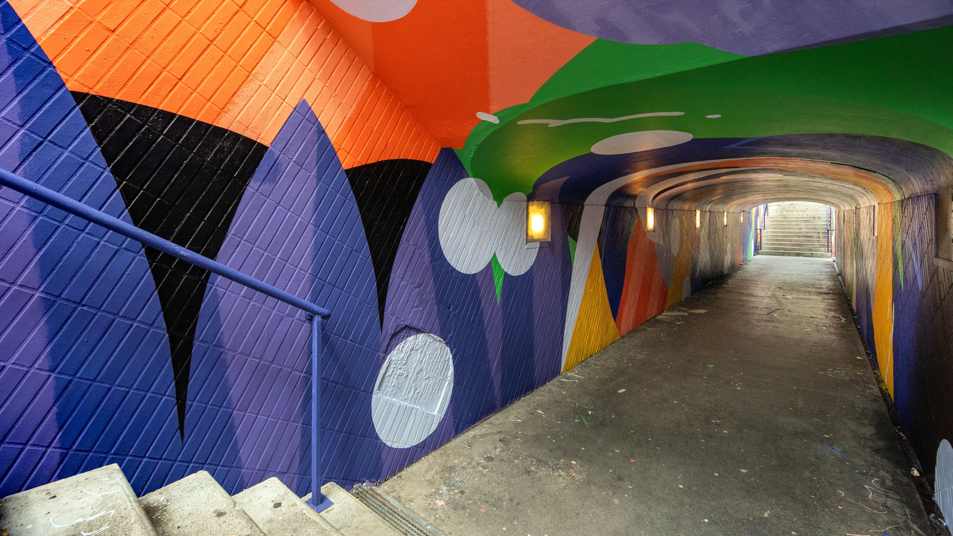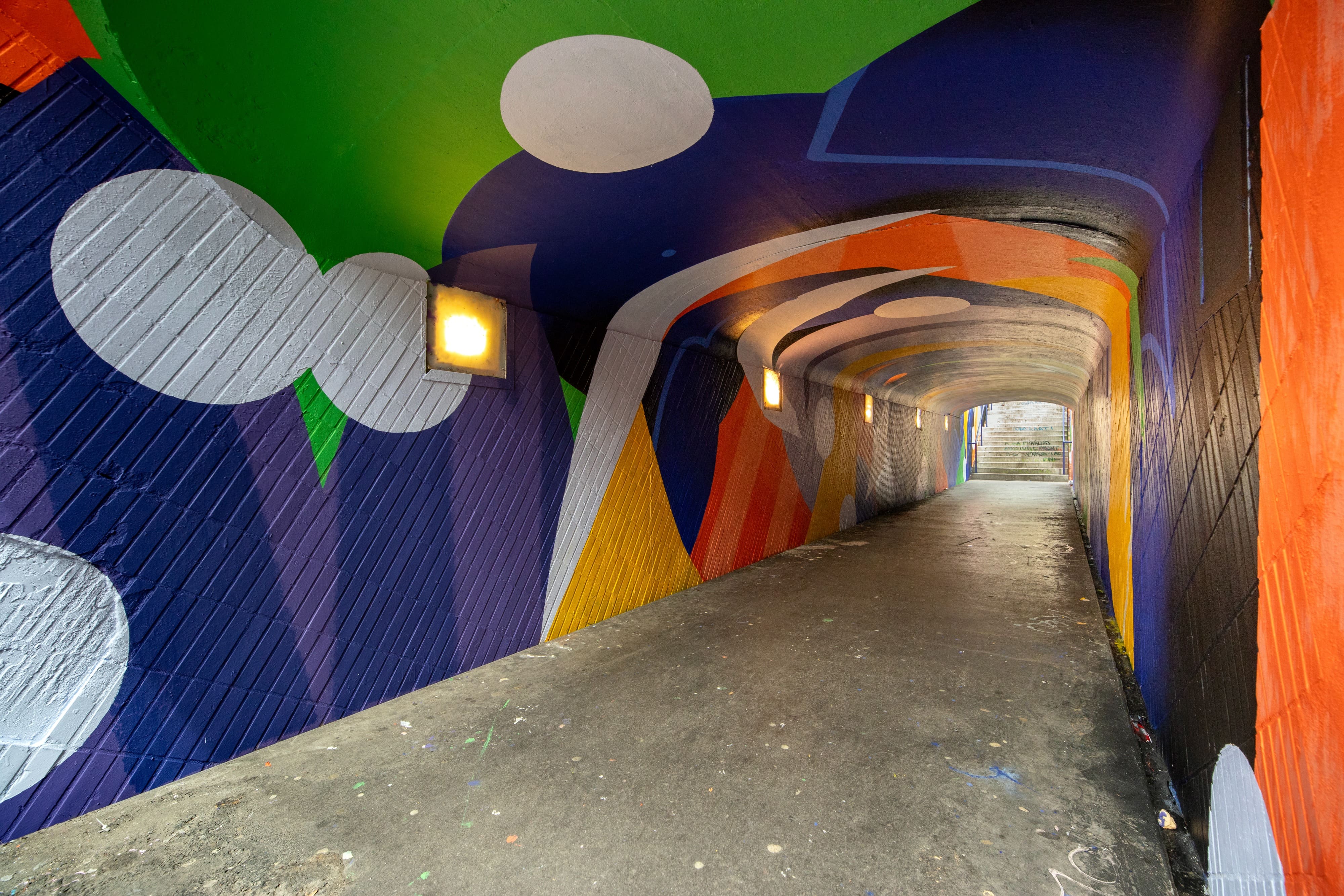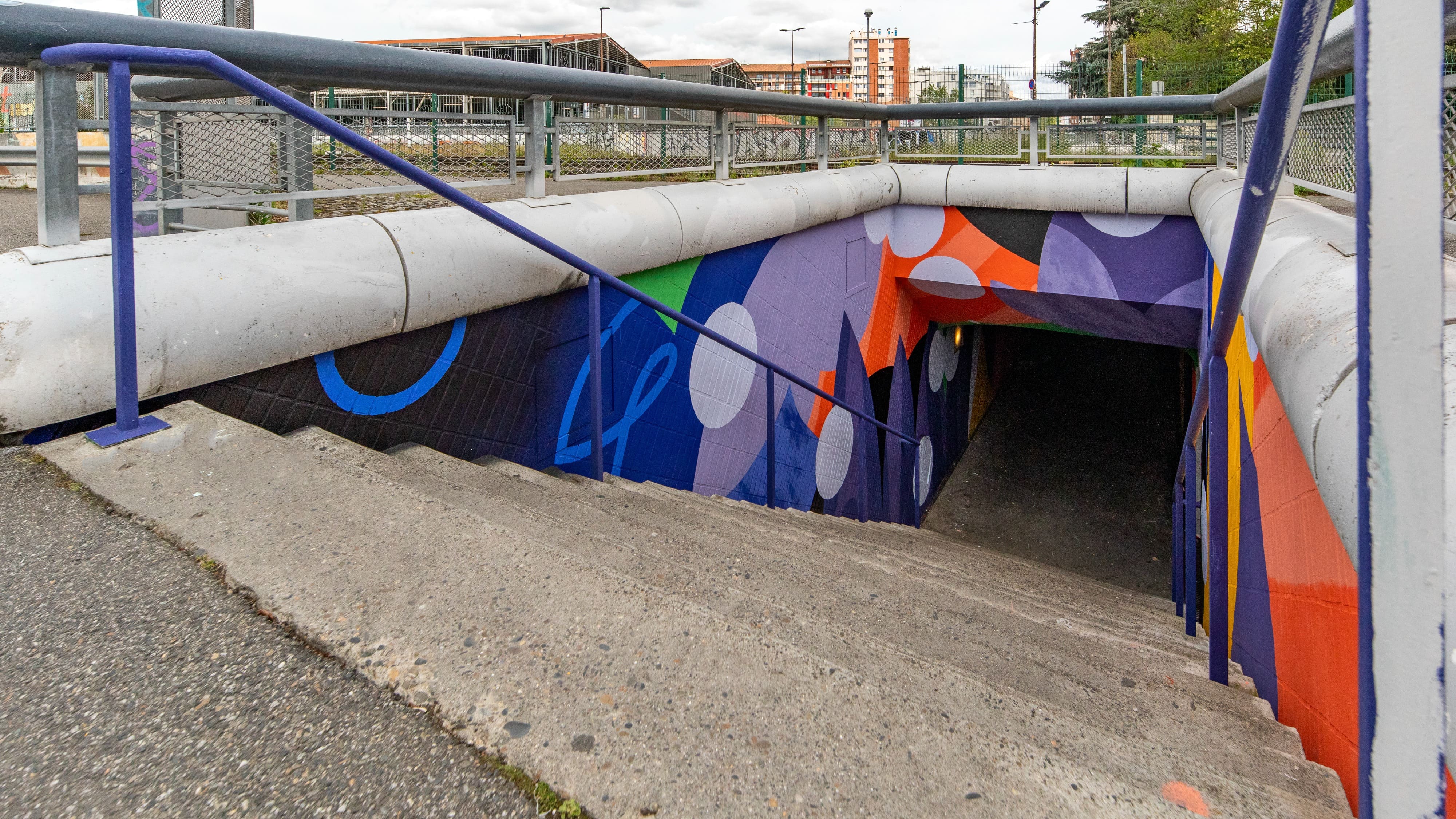Habillage original du tunnel piéton du boulevard Koenig entre les quartiers de Patte d’oie et des Arène. Projet réalisé dans le cadre de l’embellisement des quartiers de Toulouse.