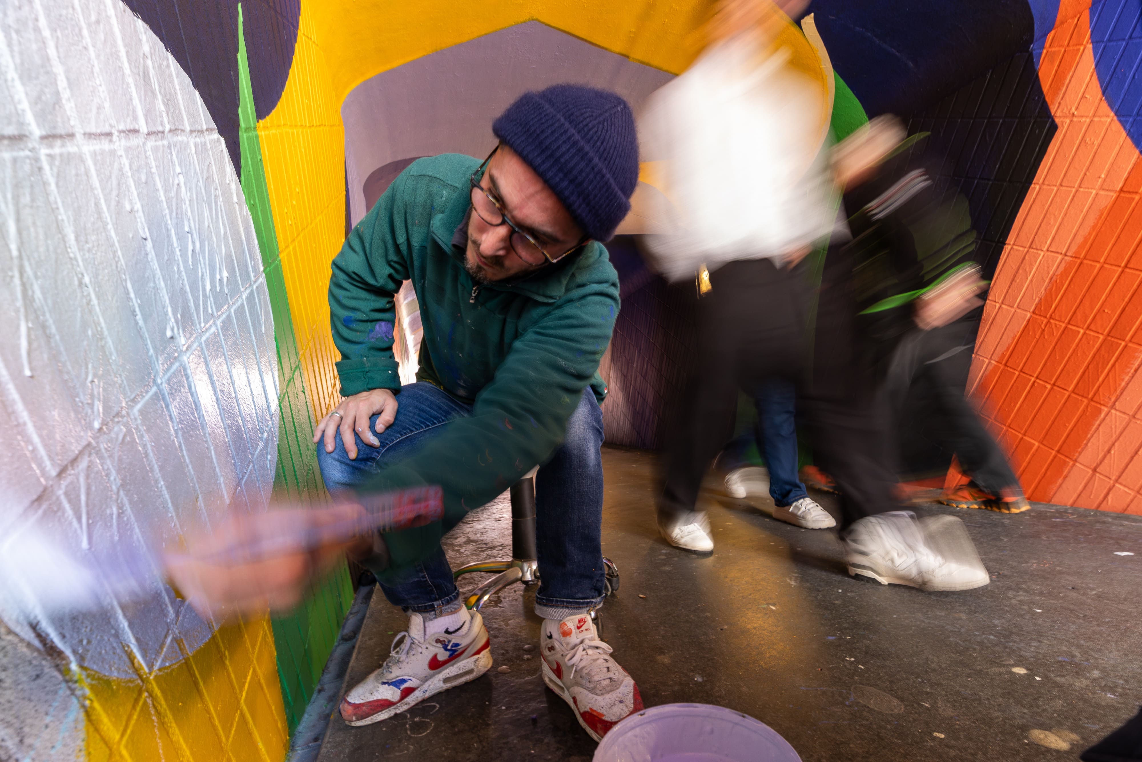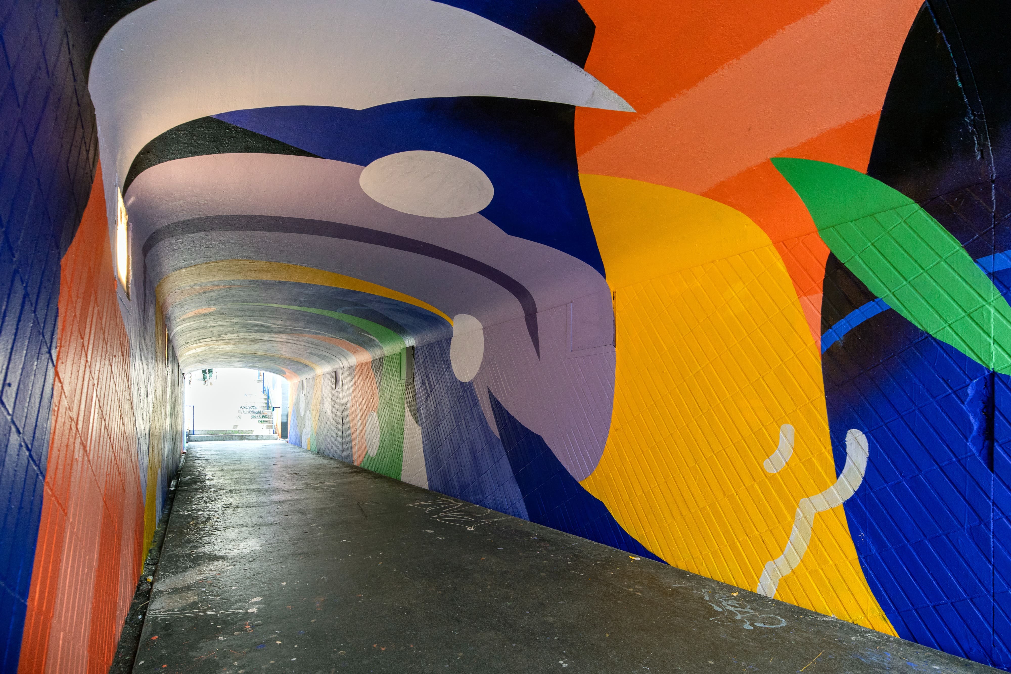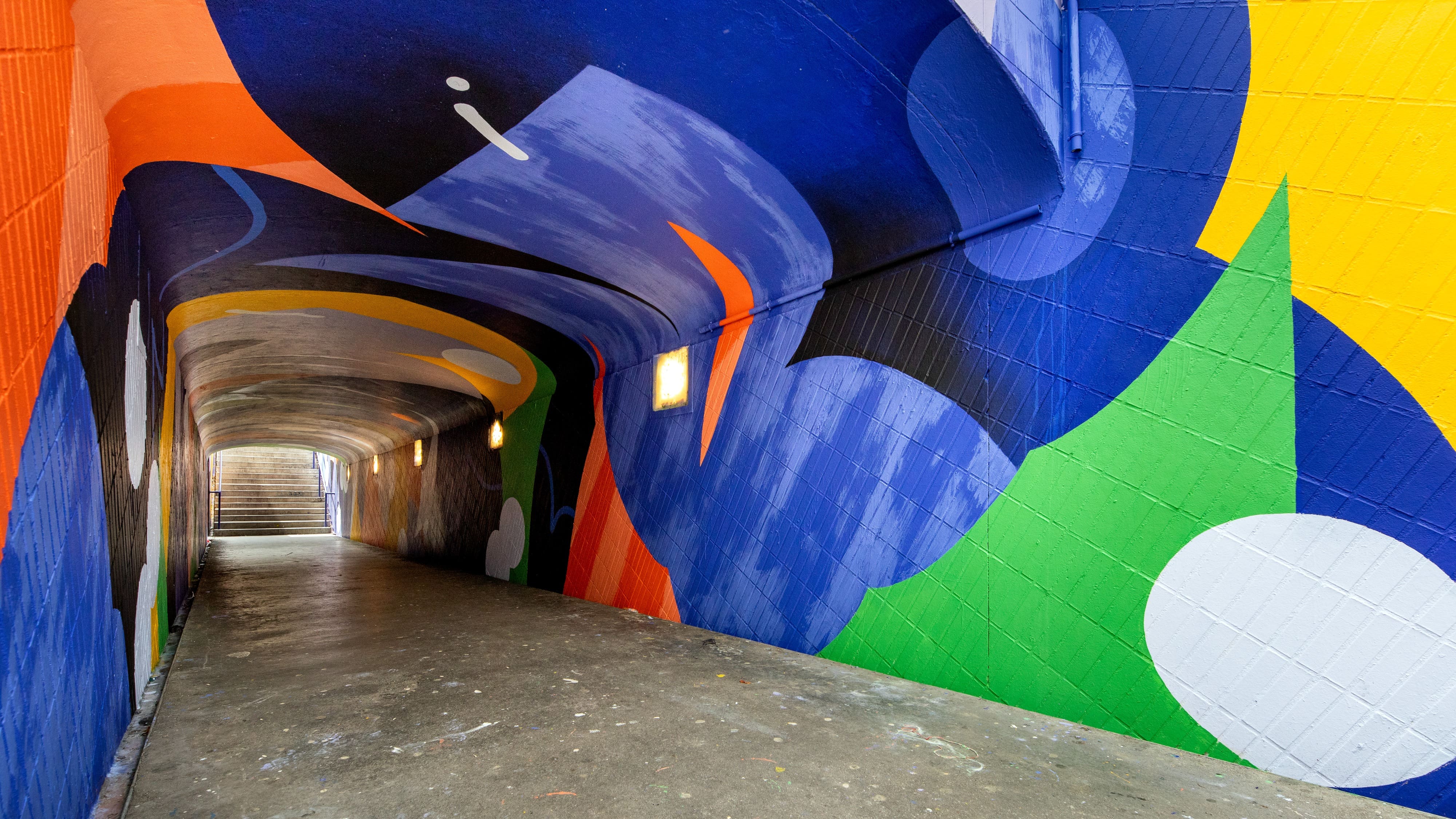 Habillage original du tunnel piéton du boulevard Koenig entre les quartiers de Patte d’oie et des Arène. Projet réalisé dans le cadre de l’embellisement des quartiers de Toulouse.